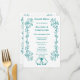 klockor-design på bröllop-menyn. Anpassa menyn Tal färgad bröllop med information om bröllop. Om du behöver hjälp med att anpassa kontaktar du oss genom länken på den här sidan. Menyn Teal färgad klockor Design personlig bröllop