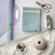 A dreamy gradient wrapping paper featuring multicolored and gold music notes on a teal-to-lavender background. Perfect for artistic gifting, music enthusiasts, concerts, birthdays, and creative packaging.