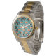 Denna manar har en modernt design i mitten av århundradet som består av fem tealrektanglar linjer och två orangar som upprepas över hela designen.