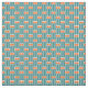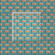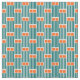 Denna väv har en modernt design i mitten av århundradet som består av fem tealrektanglar linjer och två orangar som upprepas över hela konstruktionen.