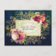 Skicka ett minnesvärt och prisvärt meddelande till alla de speciella människor som du vill närvara vid bröllop med detta djärva och dramatiska midnattsblått, tealblått och hjällblått vattenfärgsformat med vintage ser blommor och löv. Lagrar av taupe guld foliage och grönt med blommigt konturillustrationer av blommor och växter är placerade på kortets framsida. Det finns ett rektangulärt ram med guld och en vacker, ornaterad rulla ram som har ord, "Save the Date" i Fuchsia rosa i mitten, med bröllop-datumet i teal nedan. På övre högerna och nedre lämnat hörn finns stora buketter av ro, peonier, löv, ferner och andra blommor i djup rosa, korall, grädde, elfenben, vitt, persikor, blått, lila, vin och grönt. Baksidan av den här vintagen blommigt bröllop spara-datum-användan för vykort samma gult för blek och vattenfärgsbakgrund för grönt som är mittrektangelformen på framsidan. Alla dina uppgifter om bröllop är tryckta i fuchsia rosa och mörk teal blue och det finns en liten blombukett under adresserområdet. Det är säkert en underbar påminnelse om att du närmar dig bröllop. Om du behöver ytterligare matchande objekt eller vill ha ett foto-spara-till-datum-kort, skicka e-post med din begäran till niteowlstudio@gmail.com eller använda Zazzle-chattan för att få kontakt.