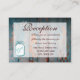 Rustic Land Barn Wood Teal Turquise Mason Burk bröllopsinstruktionskort med en inbjudan till mottagningen på framsidan av knubbigets affärskort-hölje och anvisningar till mottagningen på baksidan av mottagningskortet. Underbar för brider som använder Mason burk eller konserverar burk i sin bröllop-dekoration.