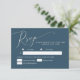 Elegant och minimal bröllop OSA med en modern skripttext överst på tealbakgrund. Den här enkla designen fungerar för vilken säsong som helst. Kortet innehåller även alternativ för val av måltid för gäster att välja bland.