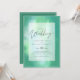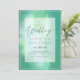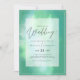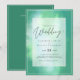 Modern bröllopsinbjudan med textmall fält på båda sidor och ett moln av grönblått färg.