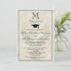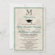 Teal turcoise blue-grönt med marble kräm mönster bakgrundsdesign. Klassisk monogrammad enkel brev-start (ditt val av förnamn namn eller efternamn) är stilig och stilig för manliga eller kvinnliga högskolor, handelsskola eller vilken nivå som helst student. Detta billiga, prisvärda billigt för det moderna klassiska tillkännagivandet från stil studenten eller ceremonin i studenten är perfekt för universiteten eller student i studenter, för ett öppet hus, för avslappnad lunch eller för party. Gratulerar till det monumentala utförandet av kandidatexamen, kandidatexamen, magisterexamen eller doktorsgrad. Klassisk design har subtle laurel-emblem, personlig monogram, tillsammans med elegant-skript. Mycket enkelt att anpassa med din information. Välj färg genom att välja "anpassa ytterligare" och ändra text och färger i bakgrunden och framåt. Formella och traditionella klassiker stil studenten inbjudan för manar eller kvinnor, flickor eller pojkar i alla åldrar.