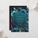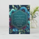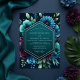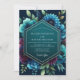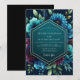 This design features a dramatic, moody aesthetic with deep teal and sapphire blue blooms accented by rich magenta and plum floral elements. Lush foliage adds depth and texture, creating an enchanting and romantic atmosphere.