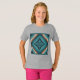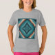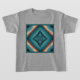 En symmetrisk geometrisk utformning av mönster i kvadratiskt format med teal- och kopparsystem färg. Centrumet har en stor diamantformad medallion med intrikat linjearbete och en cirkelformad solnedgång mönster inuti. Medaljonen omges av fyra mindre diamantformade ramar med ornat gräns mönster. Bakgrunden har en strålande solnedbrytande effekt som kommer från mitten och skapar en dynamisk känsla av rörelse. Det yttre gräns består av taggiga, sågtandliknande spiken i koppartoner mot tealbakgrunden. Hela konstruktionen omges av en tunn prickad linje gräns. Paletten i färg övergår från djupa teal i mitten till ljusare turkossignaler nära kant, med kopparaccenter i spikena och dekorativt inslag. Mönster har en infödd amerikansk eller sydvästlig formgivning som påverkar dess geometriska former och utstrålande motiv.