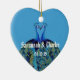 Teal Navy Blue Peacocks Kissing 1:a jul Julgransprydnad Keramik