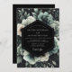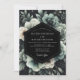 This elegant design features a dramatic display of lush florals against a deep charcoal backdrop. Soft cream and muted teal peonies create a striking contrast, offering a moody yet romantic atmosphere. Delicate foliage and subtle starlike speckles complete this sophisticated composition for a memorable union.