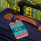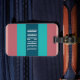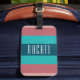 Chic teal och burgundstrimlad bagagetapp. Anpassa märkrn med ditt namn eller första namn. Teckensnittet stil och färg kan anpassas till ditt eget stil.