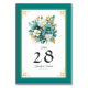 Teal och Guld Blommigt Bröllop Bordsnummer