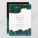 Teal och faux guld-foil agate stone-online avstånd virtuellt bröllopsinbjudan anpassade till dina evenemangsspecifikationer. Perfekt för varje tema eller trädgårdsbröllop. QR-koden på andra sidan går till din bröllop-webbplats där människor kan lära sig mer och osa.