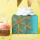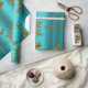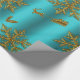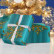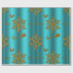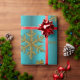 Den glamorösa julklappningen har en teal och guld-design. Det finns stora metalliska Juldekorationer som är spridda över den kornorienterade bakgrunden, inklusive stora metalliska snöflingor av guld, guld, , myllsprit, det traditionella helgdag "God jul, och ett gyllene ärg med tomten, som dras av en guldrenare.