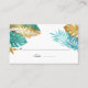 Teal - turkos och guld vattenfärgsblad för tropisk folie foliage bröllop bordsnummer kort designade för att snabbt och enkelt kunna anpassas till dina händelsespecifikationer.