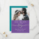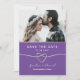Fira kärlek med den här enkla och moderna Spara datumdesignen. Med ett minimalt system för lila och teal färg, ett romantiskt silver-rep och utrymme för en anpassningsbar foto av paret, är det här eleganten perfekten för att tillkännage din speciella dag!