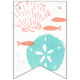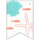En havskrävande födelsedagskalas i vibrerande orange och teal med vattenfärgsaccenter för snäcka.