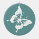 Teal och White Butterfly Julgransprydnad Keramik