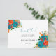 Teal Orange Botaniska Blommigt Bröllop Tack Kort