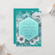 This elegant nuptial design features a beautiful arrangement of painterly blooms. Lush white anemones and soft blue-teal peonies are set against a vibrant turquoise background. The artistic, watercolor-inspired aesthetic creates a romantic and modern atmosphere for a sophisticated and stylish union.