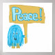 Den här söta, lilla tealfreden håller en skylt som säger Peace i blå brev. Den lilla lilla puffa varelsen vill att du ska hjälpa till att sprida ord för fred på jorden.