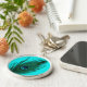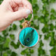 Teal Peacock Feather Large Premium Keychain Rund Silverfärgad Nyckelring