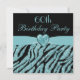Teal Printing Heart & Zebra Glitter 60:e födelseda Inbjudningar