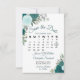 Det här bröllop spara datum-kortet har en rustik boho-chic-blommigt med skriptbokstäver och handmålad vattenfärg ro i färgnyanser och turkoser. Det finns en anpassade-kalender där du kan placera ett hjärta runt ditt bröllop-datum med plats för parets namn & bröllop. Elegant, snyggt och chic, det här kortet är ett underbart sätt att låta dina vänner och familj veta att spara datumet för din speciella dag.