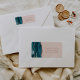 Den lämnat kant i eleganten har en ny adressetikett för bröllopsinbjudans återvändandeadress med teal vattencolor agate gräns trimmad med faux ro guld glitter. I anpassadet kombineras handskript för dammig ro och typsnitt på rosa.