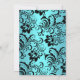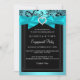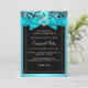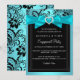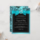 Bröllopsfest Inbjudan. Teal båge med juvel hjärta & svart blommig design. OBSERVERA alla platta bilder! De har INTE riktiga band, diamanter eller juveler!!