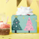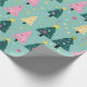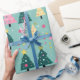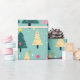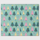 Sälj och rosa, liksom annan roligt färg gult och mörk grönt, belyser det glädjande lilla Julgranar som parad över denna pappra rulle av ljushjärtad förpackning. Det här är från en återvattenfärgsdesign.