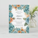 Teal Rosor och Orange Blommig Förlovningsfest Inbjudningar