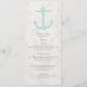 Perfekten för ett nautiskt temat bröllop är detta Rustic Anchor Bröllop Menu-kort med ett tealankare på en ljusbeige marmorbakgrund. Det här klassiska och enkla menykortet är enkelt att anpassa med din bröllop-information. Hitta fler anpassningsalternativ genom att klicka på Anpassa.
