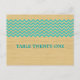Modern och trendig Rustic Chevron Bordsnummer Postcard med en digital konst tryckt struktur-bakgrund och en zig zag mönster av teal chevron rand. Den här designen är perfekt för en rustik ännu elegant bröllop. Enkel att anpassa, lägg helt enkelt till rätt bordsnummer i den text fält tillhandahåller. Klicka på Anpassa om du vill ha fler anpassningsalternativ.