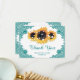 Teal Rustic Chic Snöre Solros Bröllop Tack Kort