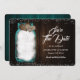 Rustic teal bröllop spara datum-kort med mynningen burk med strängen ljus och med två burlap-hjärtan på en lada med träbakgrund. Anpassa enkelt den romantiska onlinen för rustik teal bröllop spara datum. Matchningsartiklar som är tillgängliga för att komplettera detta teal bröllop spara datum.