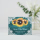 Teal Rustic Wood Snöre Solros Spara datum Meddelande Vykort