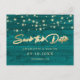 Teal Rustic Wood String Ljus sparar datumet Meddelande Vykort
