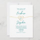 Enkelt, kalligrafiskt elegant, minimalistiskt teal och vit bröllopsinbjudan med romantiskt guld-rep hjärta och fullt - monogram bakåt.