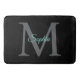 Teal Script Namn, stort Grått Monogram på svart Badrumsmatta