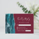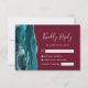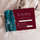 Det moderna djurutrymmeskortet i bröllop OSA på elegantens lämnat kant har en tårblått vattenfärgsagat i gräns som trimmas med faux silver glitter. Rubriken "Kinely Reply" visas i handskriftsskript, med anpassade text nedanför i silver grått-typsnittet på en burgundisk bakgrund. Den omvända sidan har en matchande tealblått och silver-agate-design.