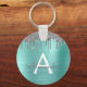 Teal Silver Glitter Rostfritt Stå Monogram Nyckelring