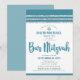 Teal Silver Tallit Pub Mitzvah, djärv enkel modern Inbjudningar