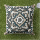 Teal Slate Blue Grått Taupe Mörk Brown Tribal Art Kudde