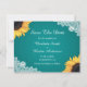 Fotot från Rustic teal blommigt bröllop sparar datumkorten med solblommor och vit blommigt snöre på en färgad övertoningsbakgrund. Anpassa det här kortet enkelt med information om bilder och bröllop. Matchande objekt är tillgängliga. Bakgrunden kan ändras till vilken färg som helst.