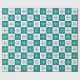 Vit och teal snöflingor alternerande på incheckade blå och vita gröntar för att skapa en snyggt geometrisk perfekt för mönster för jul. Om du vill visa den ursprungliga designen för andra objekt klickar du på länken "Rocklawn Arts". Copyright ©Claire E. Skinner. Alla höger reserverade.