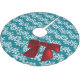 Teal Snowflake Red Bow Julgran Skirt Julgransmatta Borstad Polyester