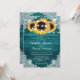 Elegant Rustic teal och solrosbröllopsinbjudning idealisk för land, trädgård, trädgård eller bröllopsfest av solrosblommor. Matchningsartiklar som är tillgängliga för att komplettera detta sterala rustiska bröllop-kort med solblommor på en rustisk träbakgrund som är försedd med vit blommigt snöre och sträng ljus.