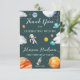 Say thank you in a sweet outer space style with this teal space-themed thank you design. Featuring a cute astronaut, rockets, planets, and stars on a soft teal background, it’s perfect for a first birthday party, space-themed celebration, or astronaut baby shower. A charming keepsake for guests.