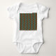 Denna baby-kroppsdräkt har ett modernt mönster i mitten av århundradet av teala ovaler som är sammankopplade av linjer med ljust grönt cirklar på en fält av brunt. Vill du ha annorlunda färg? Säg det.