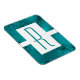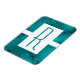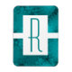 Ett klassiskt utseende med modern beröring. Ett tealmonogram inuti en vit rektangel mot en tealspeglad bakgrund.